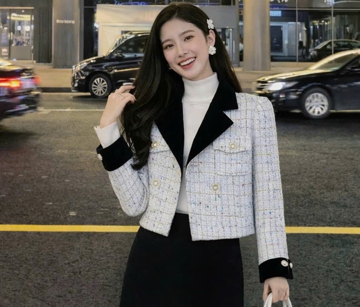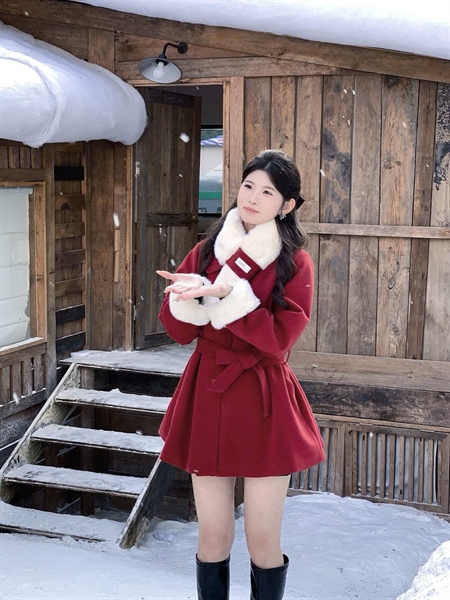 99081 mangto dạ trần phao dáng ngắn choàng lưng lệch khuy dọc k159
