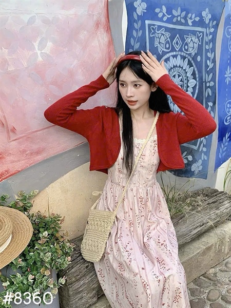 Set đầm dạ gân HOA NHÍ + khoác len V311