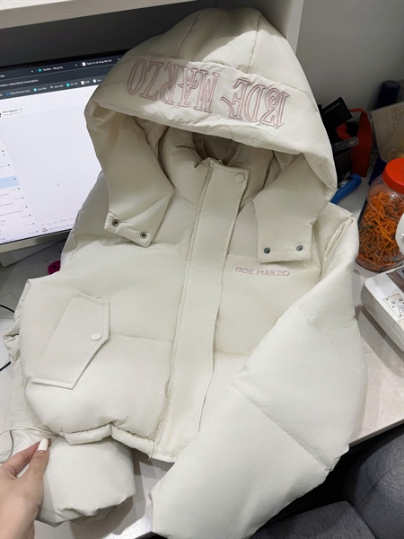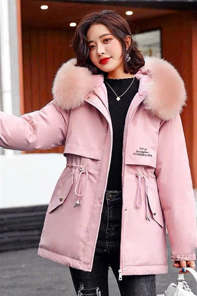 Áo parka lót lông thêu chữ Hồng K054