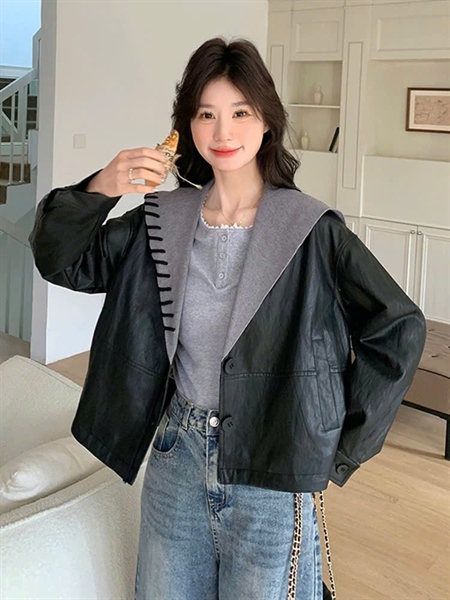 AKP Cổ bẻ nẹp phối da K100