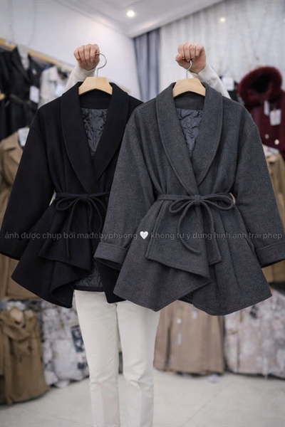 áo khoác dạ muối tiêu babydoll xòe A ( 2 lớp + 1 lớp ép mùng )