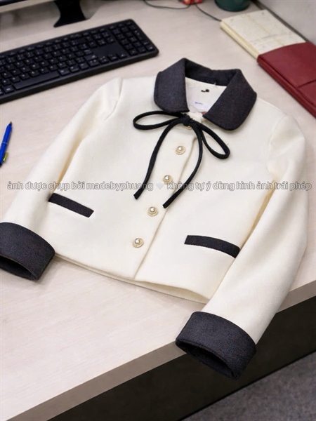 AKD áo khoác dạ cổ sen nằm phối màu 2 lớp + 1 mếch k278