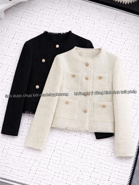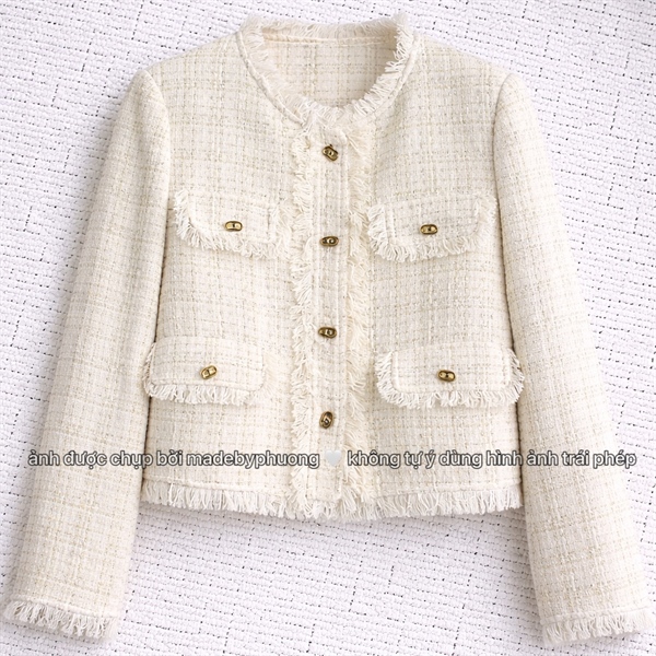 AKD khoác dạ tweet kem pha ánh kim khuy vàng kiểu cách ( 2 lớp ) K302