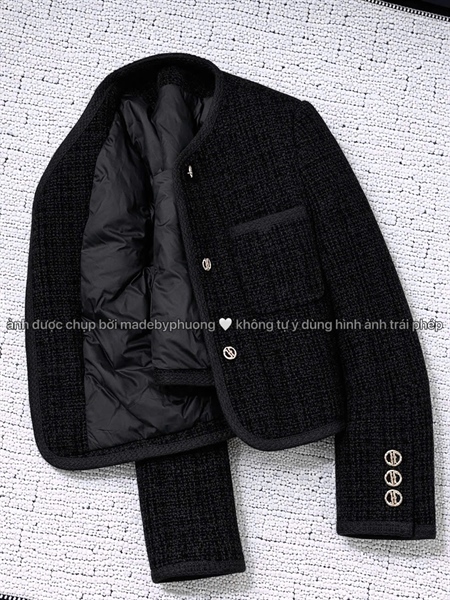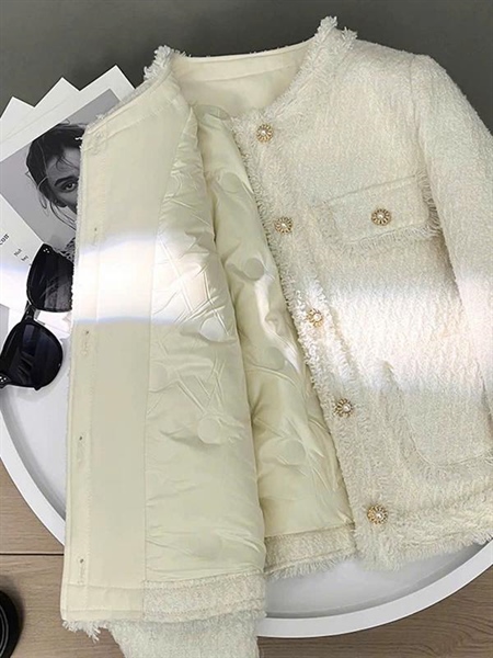 Khoác dạ tweet siêu VIP trần lông vũ màu kem siêu dày - giảm 95% k296