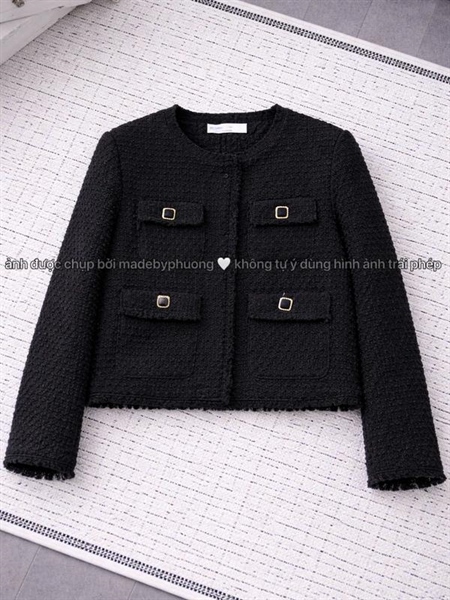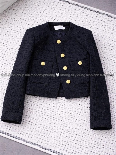 AKD khoác dạ tweet dệt len 2 lớp khuy đồng vàng vương miện 2 túi viền tết k304