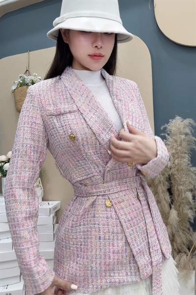 2440 CV nhung nhiều mảnh túi chéo 2 sườn đính 3 khuy C106