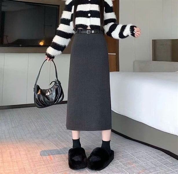 CV len siêu dày lót lông thỏ dáng xòe dài C201