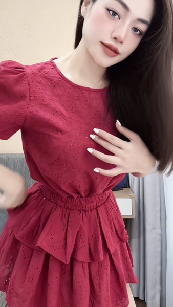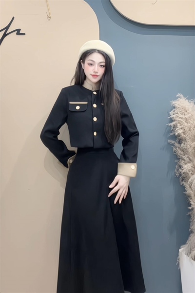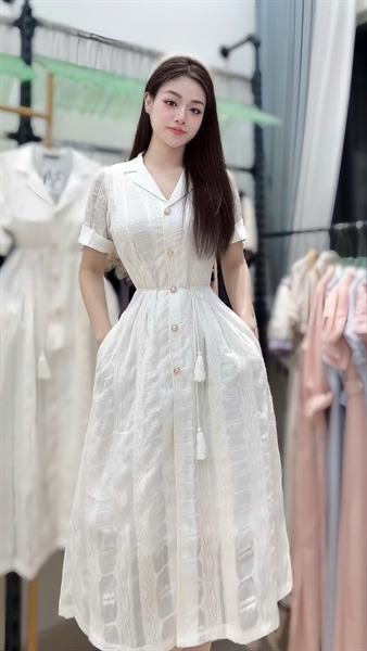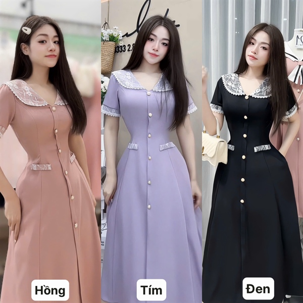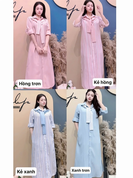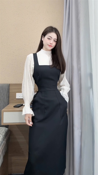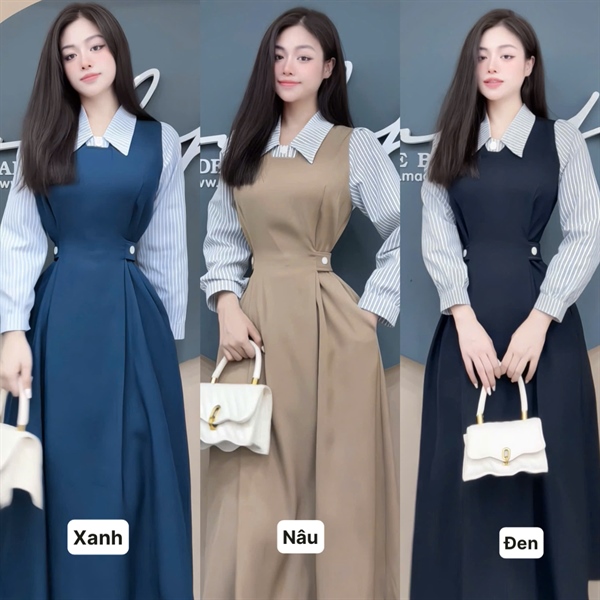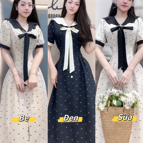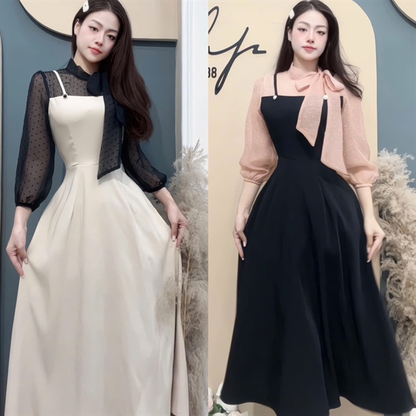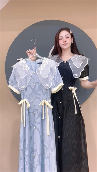 2280 đầm phối bi nổi giả yếm nơ lệch