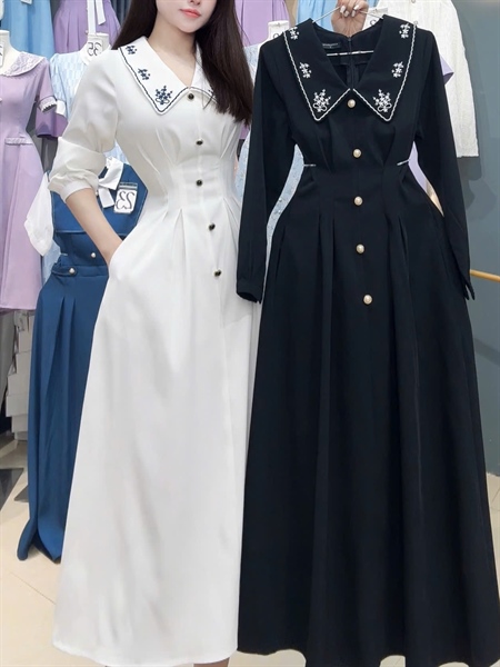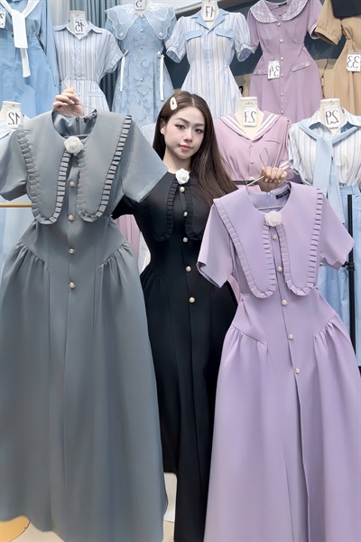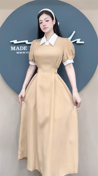 đầm 2 lá cổ dài xếp ly tùng eo HOA TRÀ