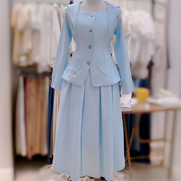 6307 set dạ áo cổ vuông túi tim +cv midi v330