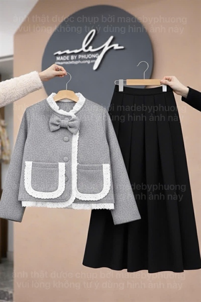 Set dạ lót lông bèo tiểu thư + CV dạ đen ly đuổi dáng dài