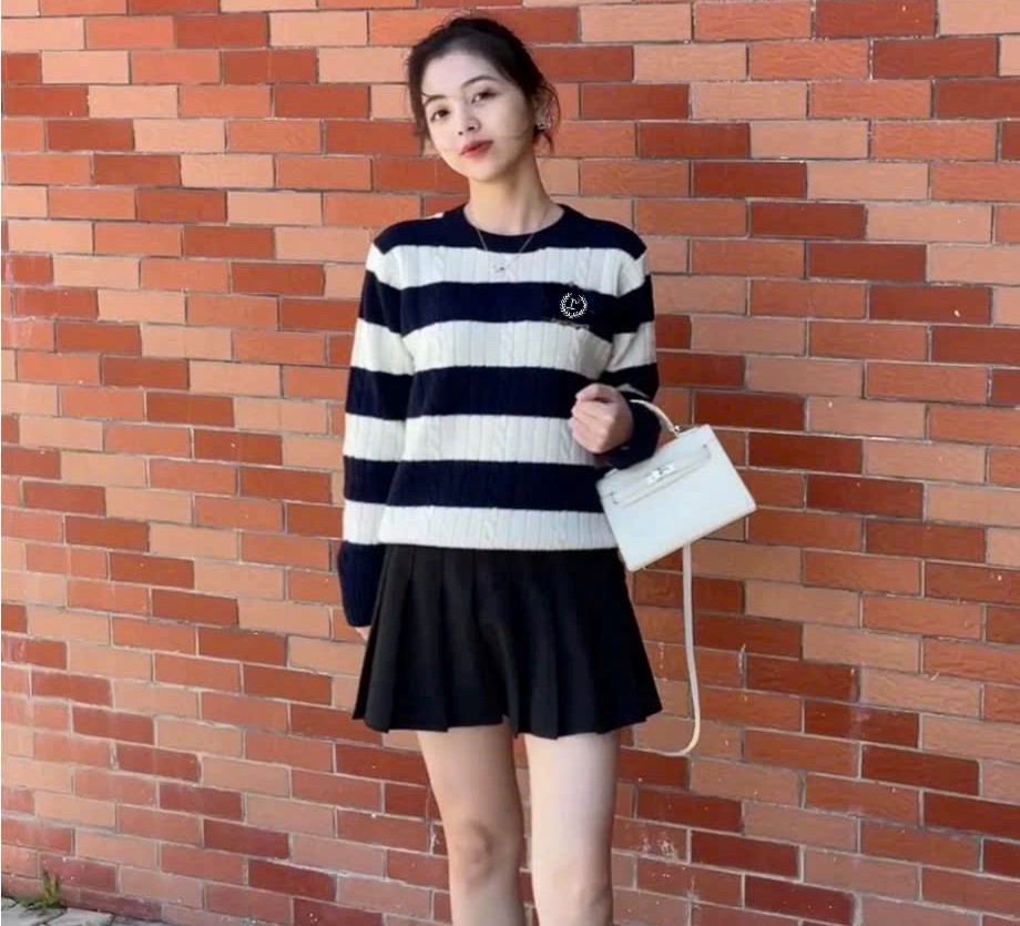 | 1243... | KHOÁC DẠ LEN ÉP kẻ chéo đen trắng phối viền , 399K XẢ 213K |