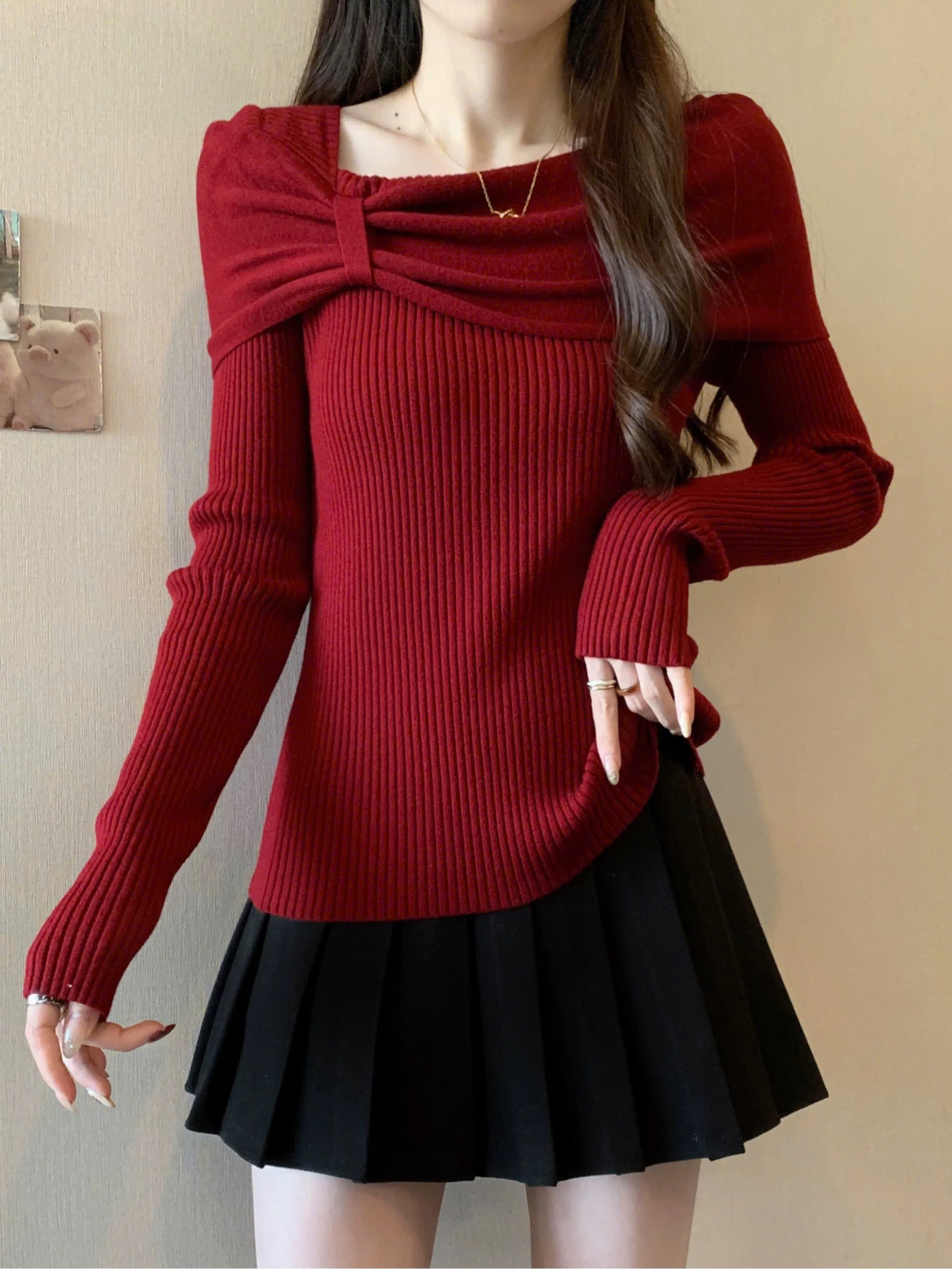 ĐẦM LEN ĐỎ 4587 XẢ 228K SIZE S M L