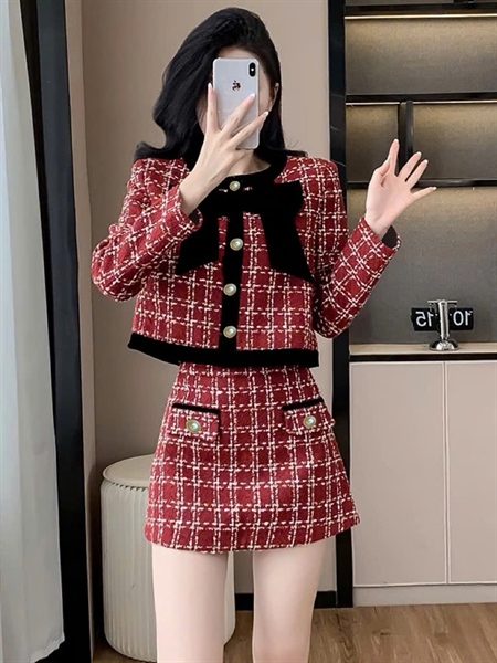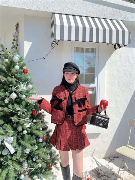2349 set dạ đỏ trần phao nơ đen sz S SALE 387K SỐ ĐO EO 68
